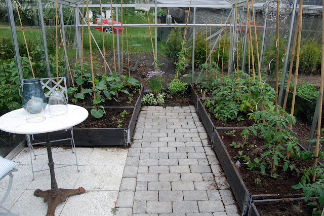 Da vi flyttet til Varpet var det aldri noe spørsmål om vi skulle ha drivhus. Selvfølgelig skulle vi det, vi spiser jo både tomater og agurker! Men først og fremst synes jeg drivhus er skikkelig pent! Slunkent byggebudsjett og antikvariske byggelover begrensnet drivhusdrømmen litt. Det er heldig for Yngve at jeg ikke har evne til å vente, for med dagens byggeregler hadde drivhuset garantert endt opp på 50 m2, og lastebilen hadde måttet bo et annet sted. Men i 2012 var reglen 15 m2, så drivhuset er på 14,9 m2. I år har drivhuset fått barn (aner ikke hvem faren er...) så gjenstår det å se hvor mye det vokser.
